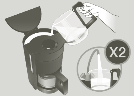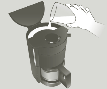 • Deitar a solução no depósito de água da cafeteira de filtro (sem café)